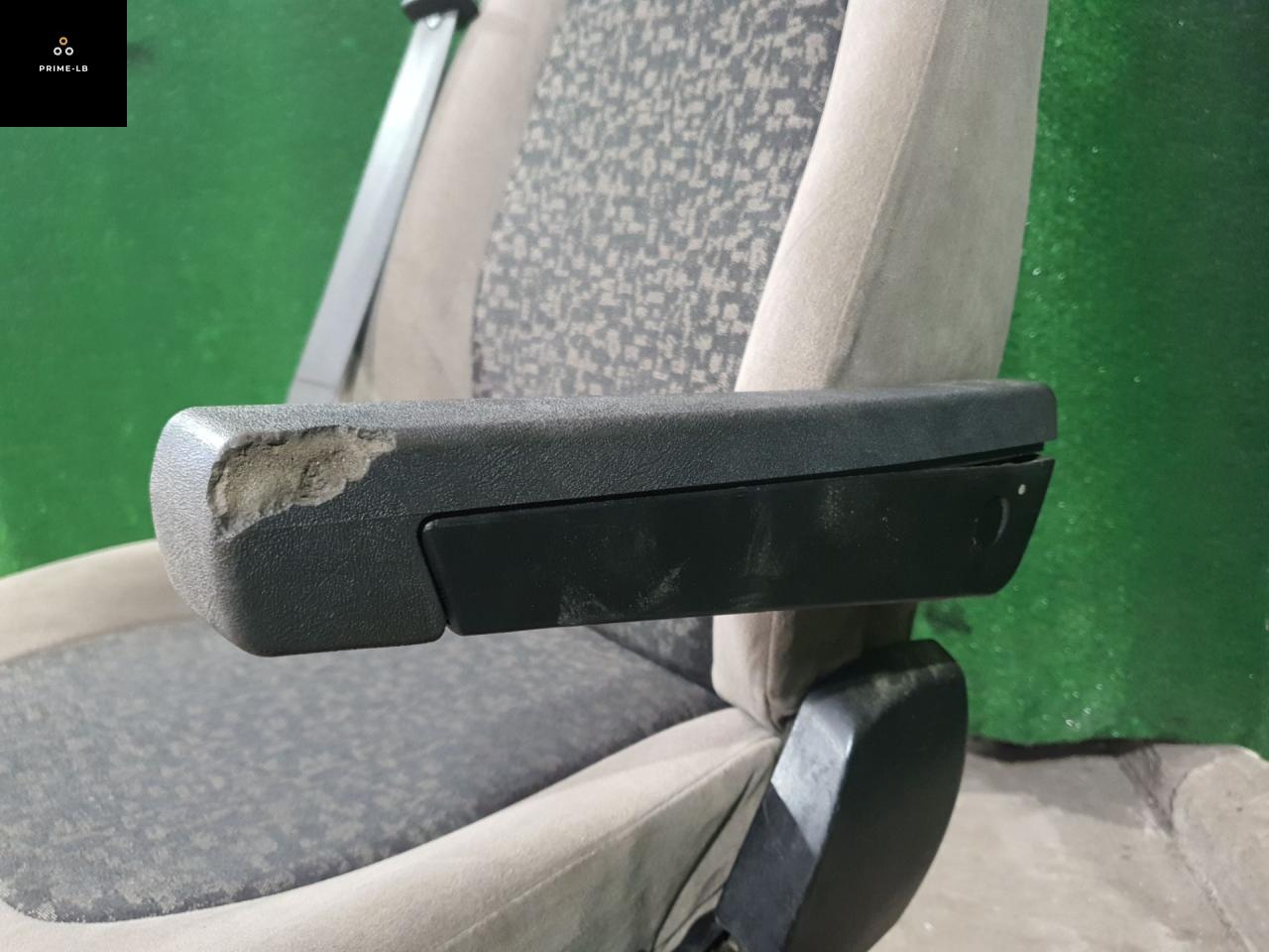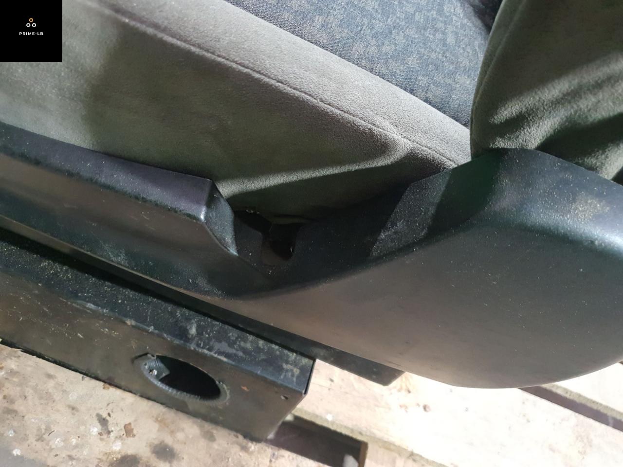 Обшивка целая, наклон спинки рабочий, подлокотник рабочий, обшивка подлокотника с дефектом, снят фиксатор ремня, по полозьям ездит