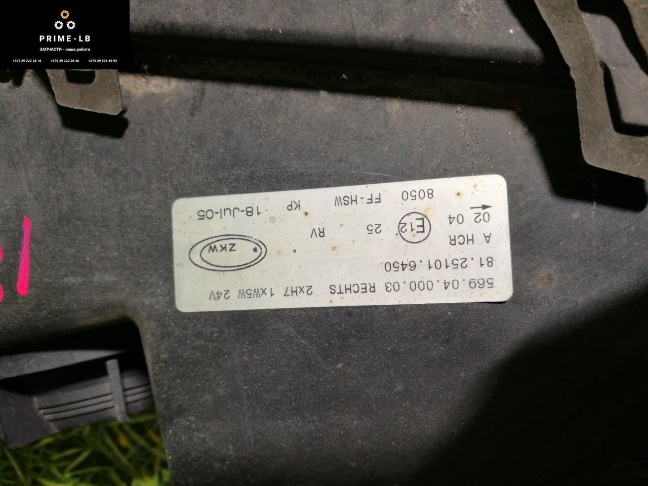 Фара правая MAN TGA 2005