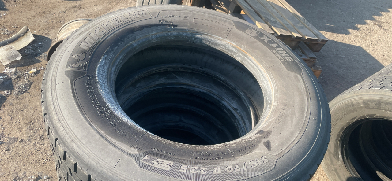 Комплект шин Michelin X Line 315/70 R22.5 грузовые, всесезонные, 2017, остаточная высота: 6мм. DAF XF 105 2011 12.9 л., MX 340, дизель, МКПП Желтый, грузовик, левый руль