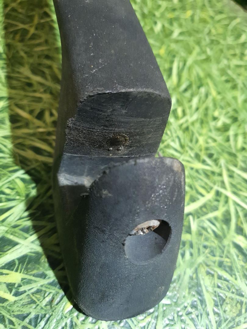 Левая. Отрезан болт крепления к петле капота
